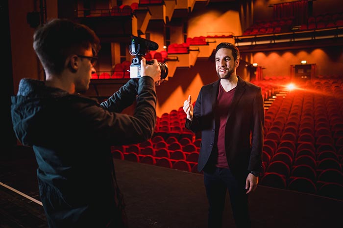 Er ist dein Freund & Schatten. Er möchte deine Geschichte erzählen. Dein Warum auf der Bühne und die Emotionen von dir und von deinen Teilnehmern einfangen.